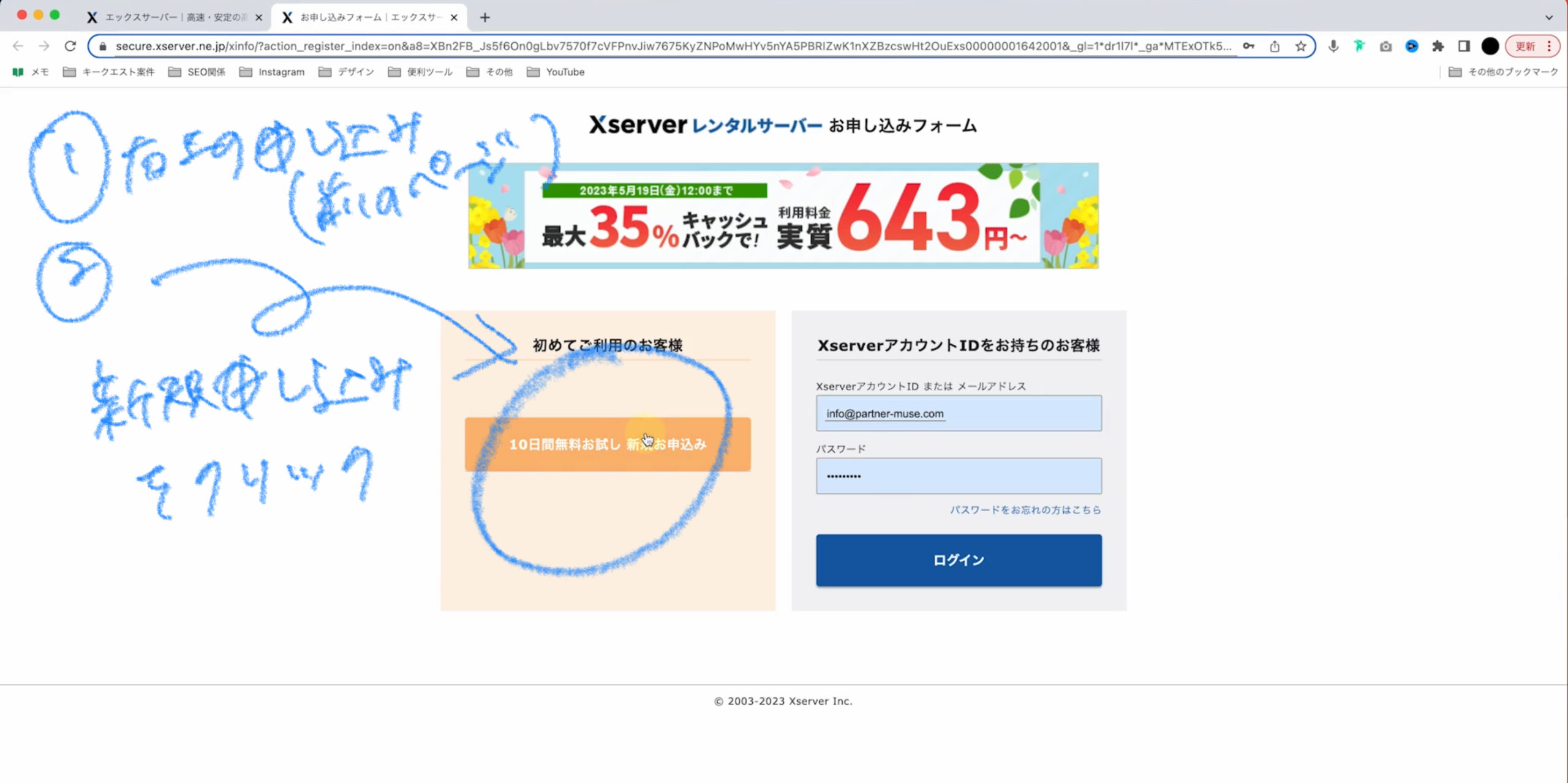 →右上のオレンジのボタン[お申し込み]で新規アカウント作成する