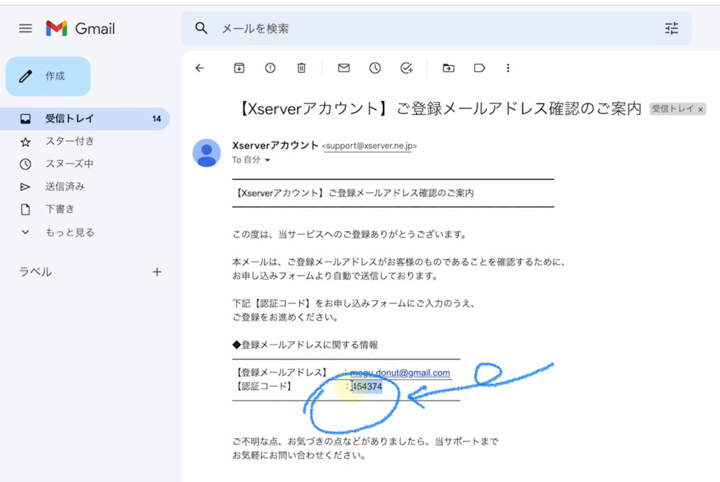 申し込みが完了すると、自身の登録メールアドレス宛に以下のメールが届くので確認