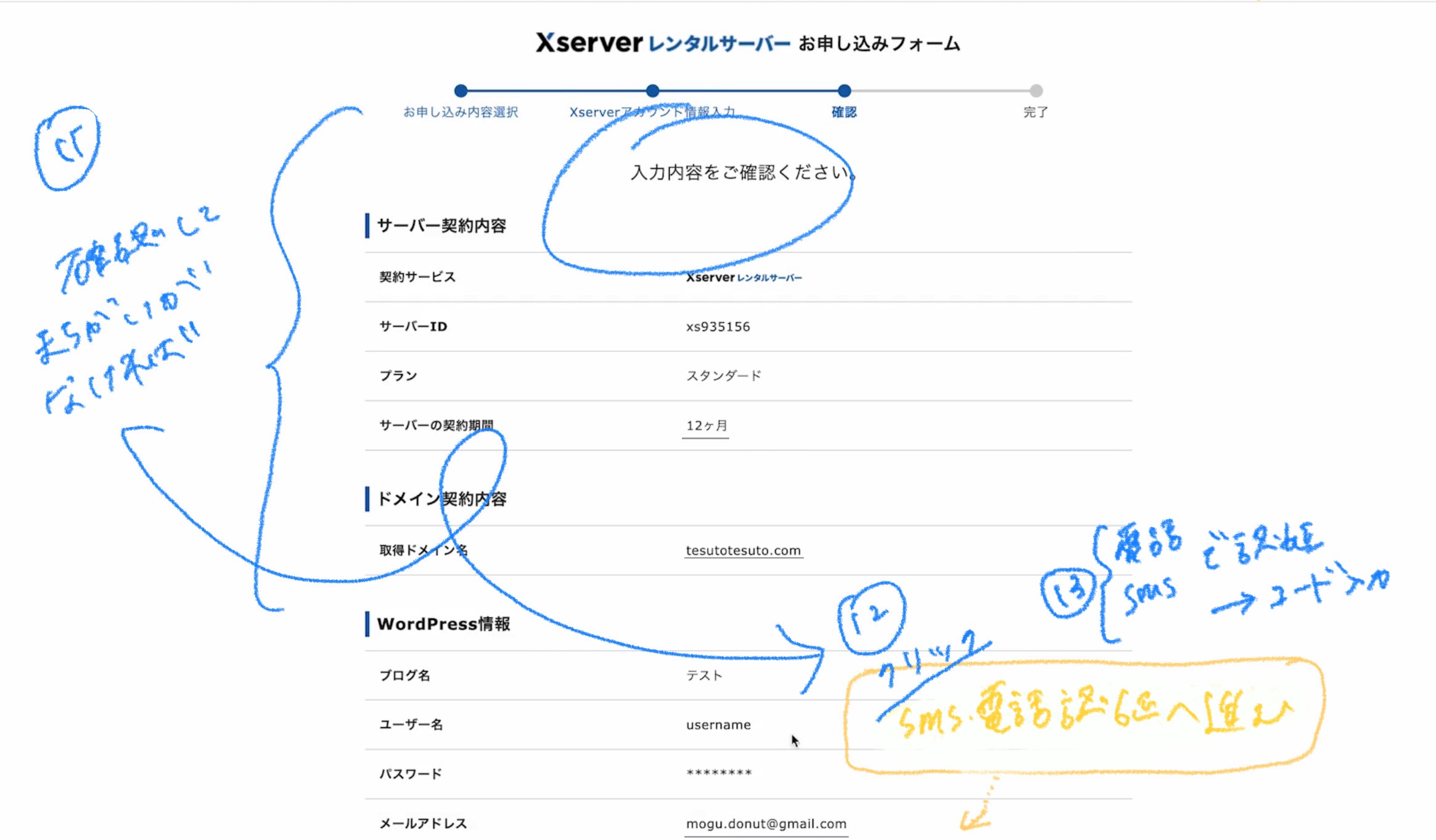 - 再度申し込み画面に戻るので、内容に修正がないか確認する