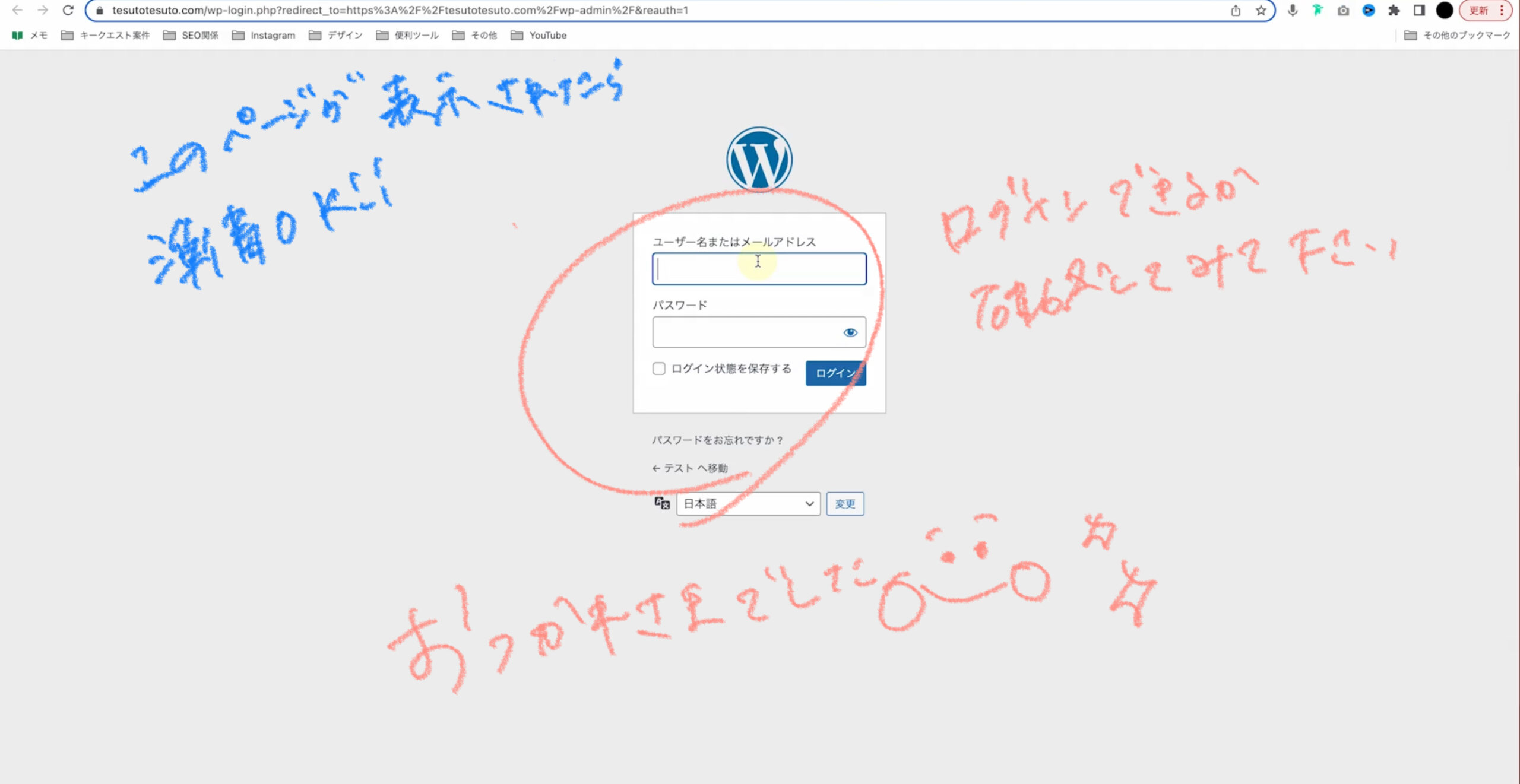 このログインページが表示されるようになったらドメインとwordpressの接続が完了です